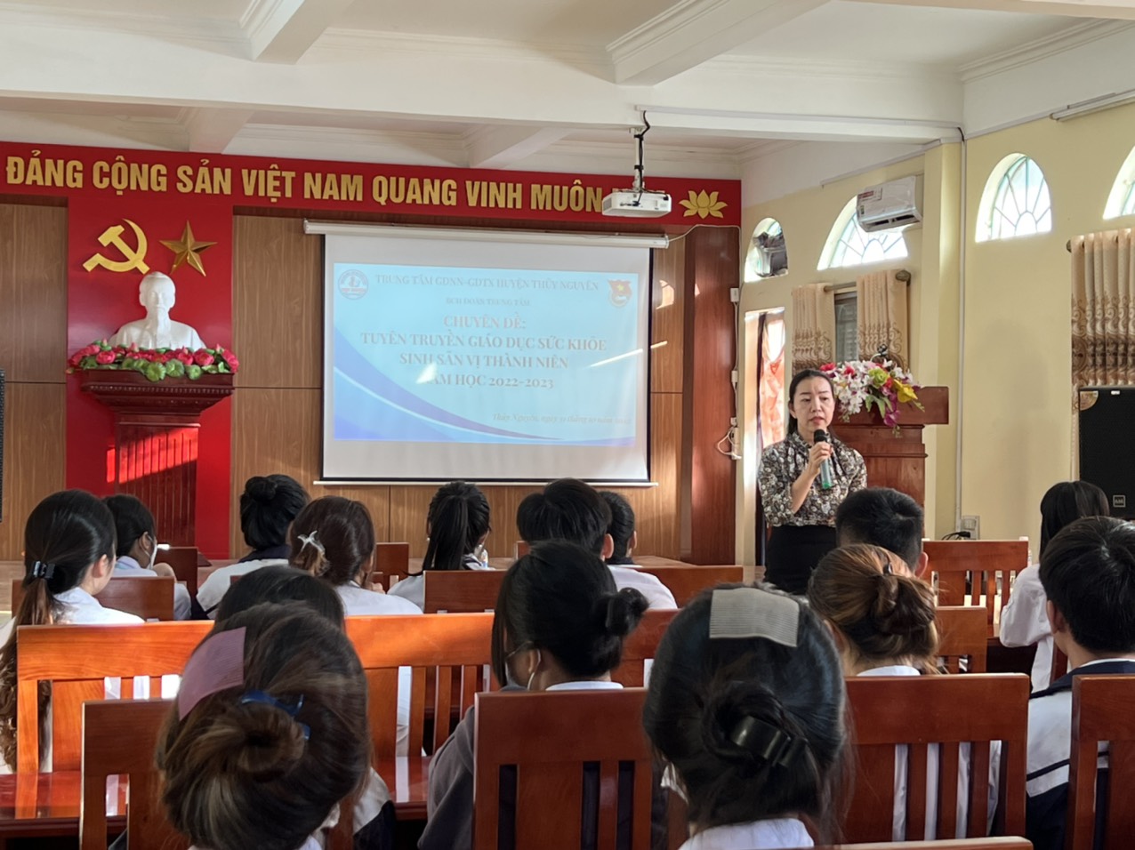 - Căn cư kế hoạch năm học 2022- 2023 của Ban Giám đốc Trung tâm GDNN - GDTX Thuỷ Nguyên, BCH Đoàn kết hợp cùng Trung tâm Dân số xây dựng kế hoạch tổ chức Chuyên đề: “ Sức khoẻ sinh sản vị thành niên”;